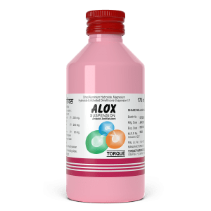 Alox Antacid Suspension contains Magnesium Hydroxide, Dried Aluminium Hydroxide Gel and Activated Dimethicone which belongs to a group of medicines called antacids used to treat acidity, heartburn, indigestion, gastritis (inflammation of the stomach), and stomach upset.